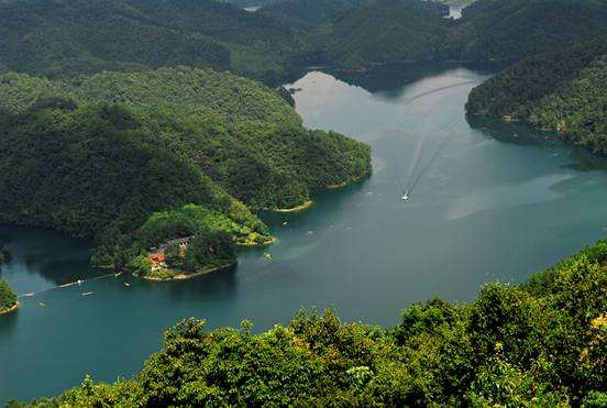 上犹江是一条美丽多情的江,它从云凝烟缥的罗宵山脉源流而来,为长江流域赣江水系的一大支流,由西向东流淌,全长198公里,落差615米,上犹江历史上曾被称为“九十九曲河”。它蜿蜒曲折,水色清澈,曾吸引过无数文人骚客。北宋大文豪苏东坡对此倍加赞赏,赋词曰“长河流水碧潺潺,一百湾兮少一湾,造化自知太元巧,不留足数与人看”。如今,上犹江上已拦坝建起了五个大电站,因而形成了五大湖泊,一是罗边湖;二是仙人湖;三是清湖(即南河电站);四是陡水湖;五是龙潭湖。上犹江象一根银线穿起五颗明珠,湖光山色,显出一种天然美。